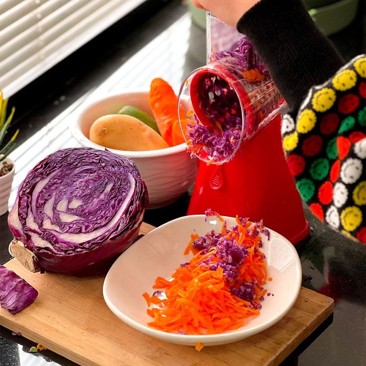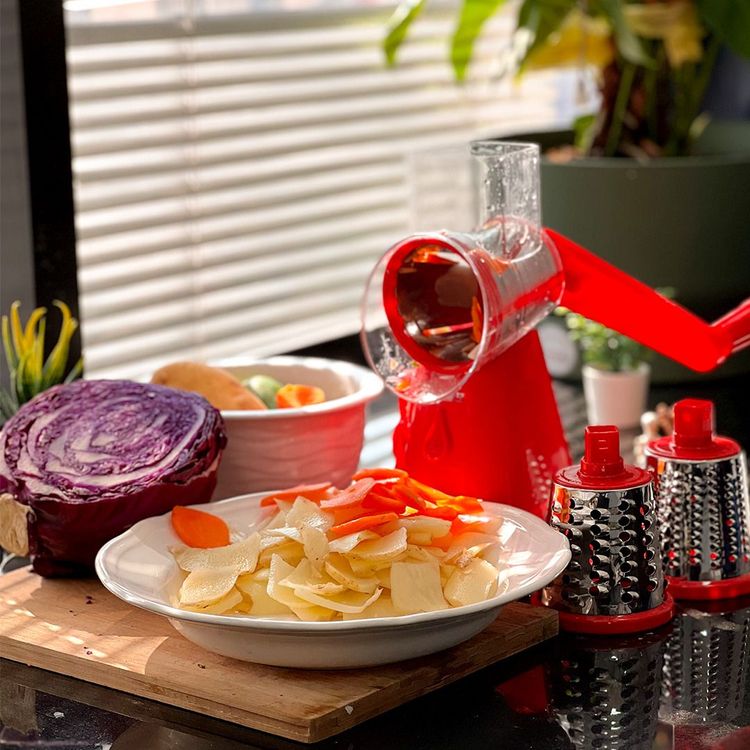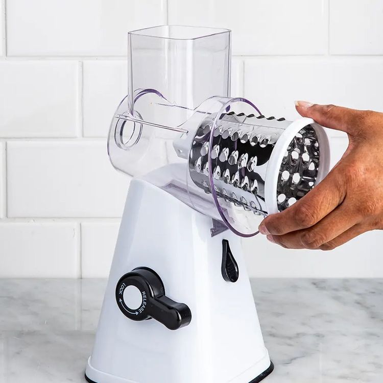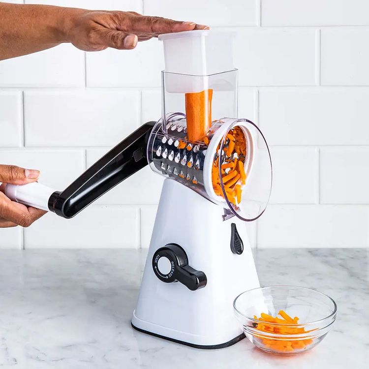 كل ما عليك هو تثبيت شفرة التقطيع والبدء بتدوير المقبض للحصول على طعامك مقطع بمهارة عالية