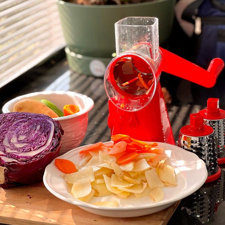 قطاعة ومبشرة للخضراوات مع شفرات قابلة للتبديل، تعمل يدوياً