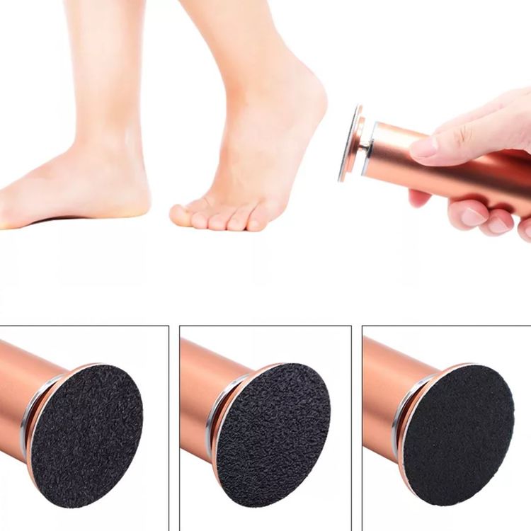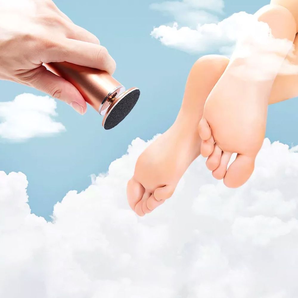 يعمل الجهاز على تنعيم منطقة كعب القدم و إزالة الجلد الجاف و الميت بسهولة