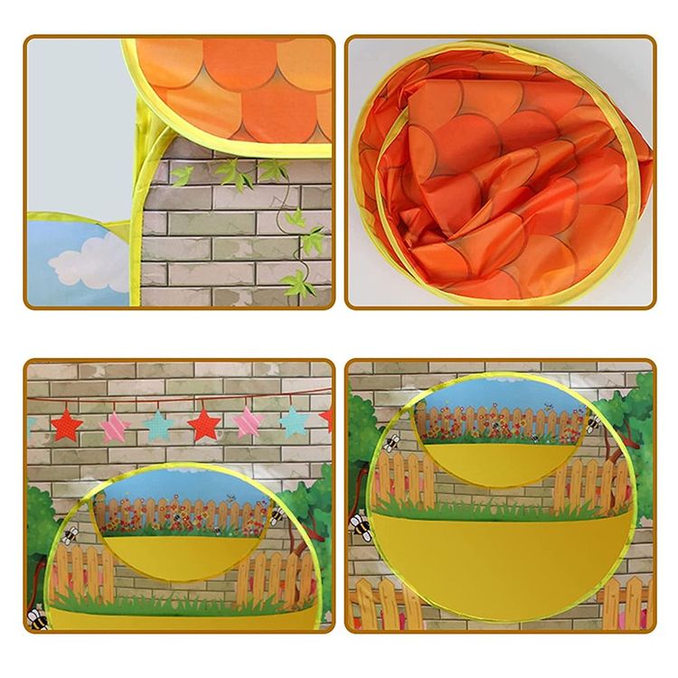 رسومات جميلة على الخيمة ، كالبيت وسياج الحديقة و العصافير والنحل