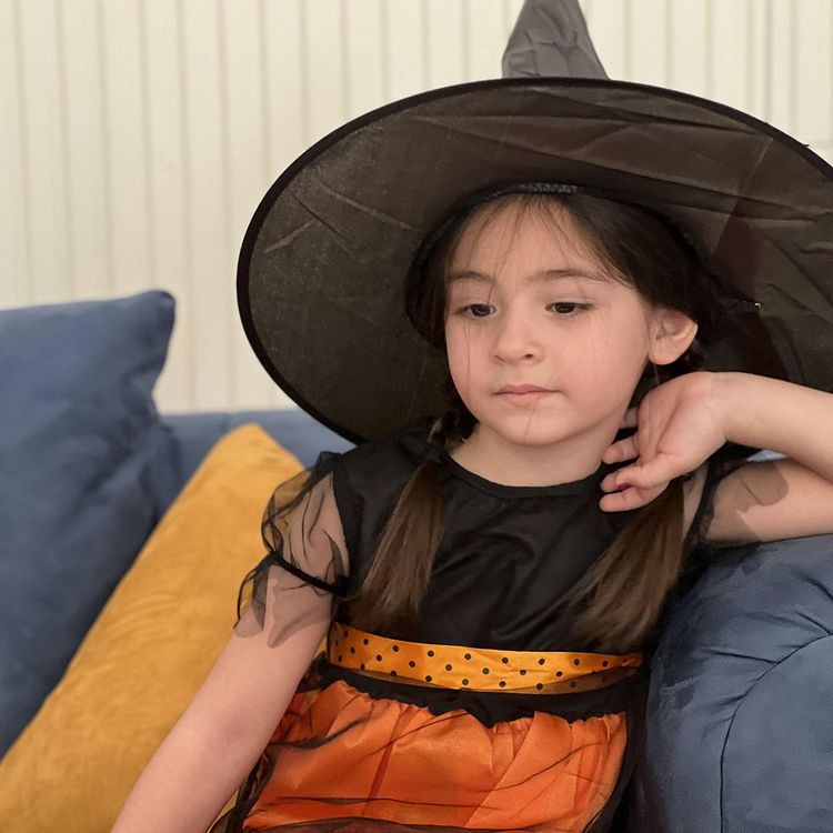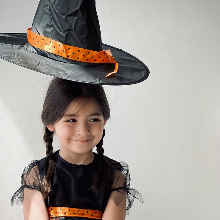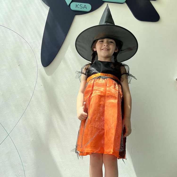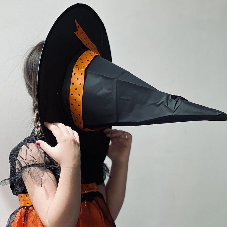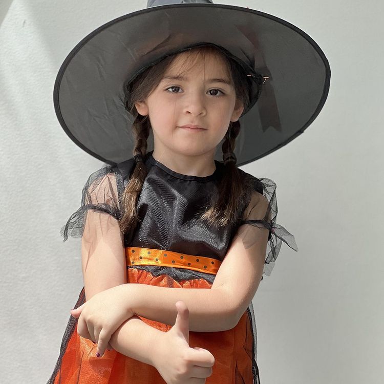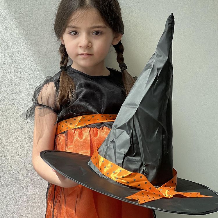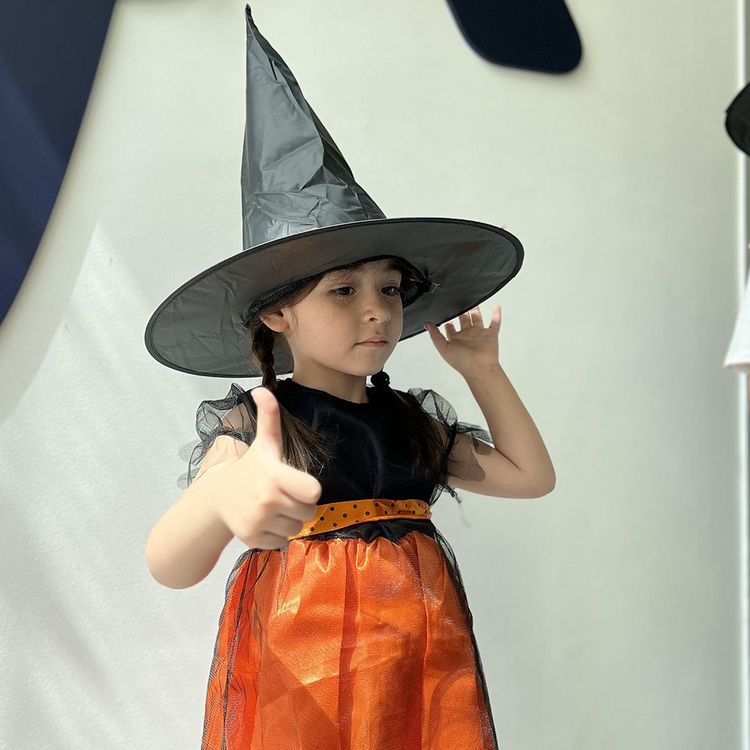 الزي مستوحى من زي الساحرة ويأتي الزي مع حزام وقبعة