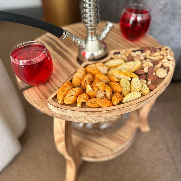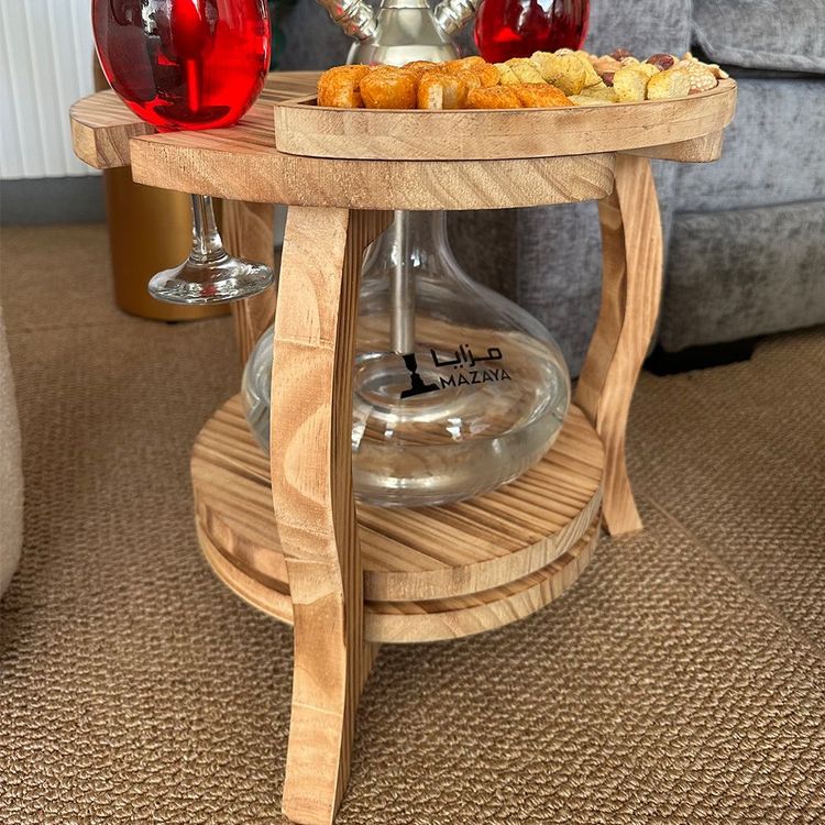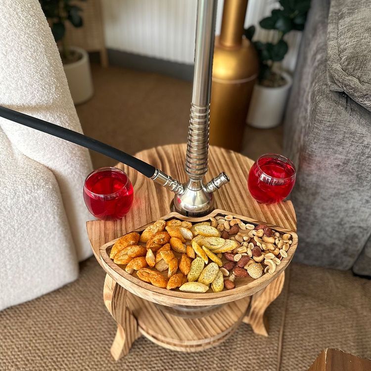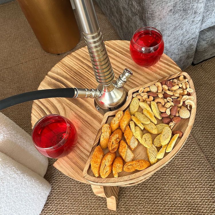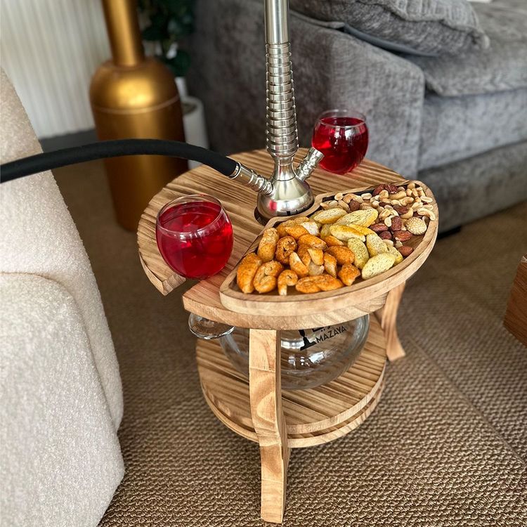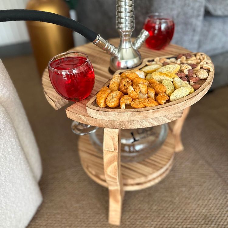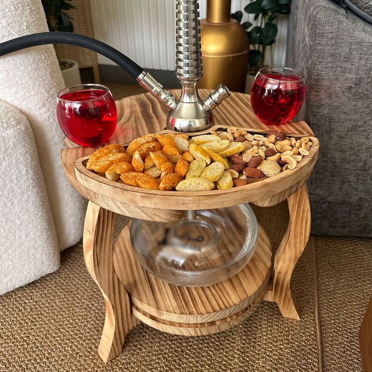 - ضع الأرجيلة في الفتحة المخصصة على السطح العلوي - استخدم الأقسام العلوية لتقديم التسالي أو الإكسسوارات - حرّك القاعدة الدوّارة للوصول السهل من أي جهة - استمتع بجلسة منظمة، مريحة، وأنيقة