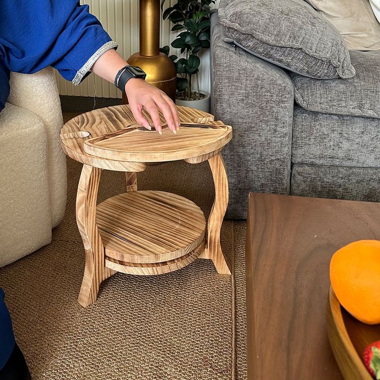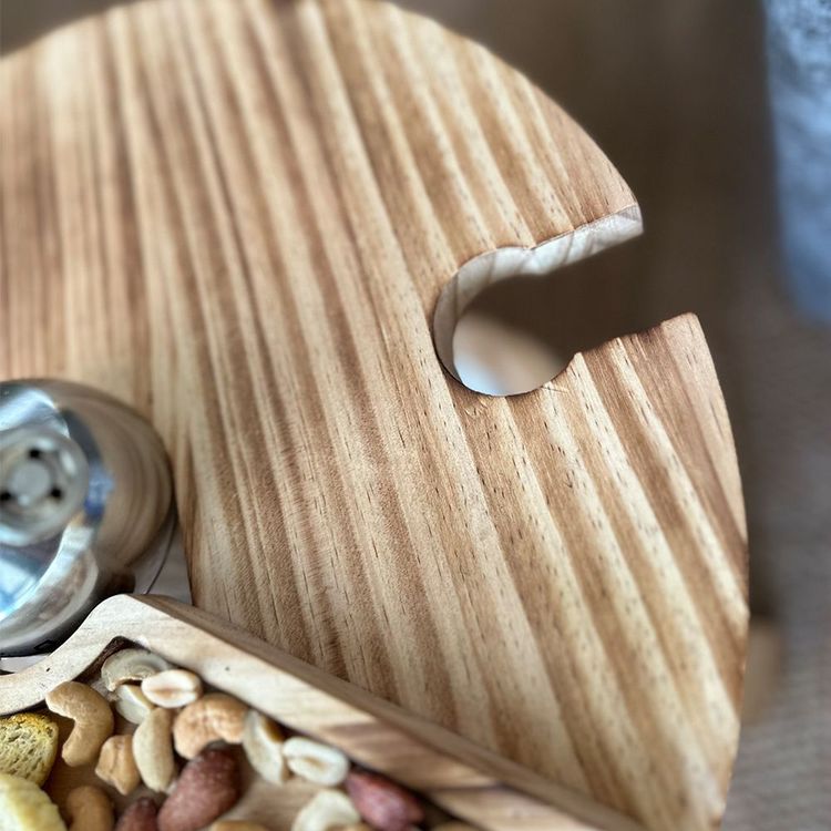 مصنوع من الخشب الطبيعي عالي الجودة بلون خشبي دافئ يبرز عروق الخشب ويمنح إحساسًا بالفخامة والدفء، مع تشطيب ناعم يعكس عناية بالتفاصيل ويضمن استخدامًا متكررًا دون فقدان الجمالية.