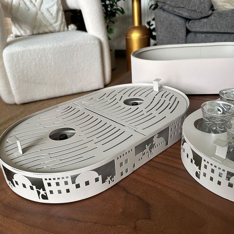 تفصيل ذكي ومدروس يميّز القطعة، حيث يحتوي التصميم على مكان مُجهّز وآمن لوضع مصدر حرارة، ما يتيح وضع إبريق الشاي أو القهوة وتسخين المشروبات مباشرة أثناء الجلسة، لتبقى الضيافة ساخنة وجاهزة في كل وقت، حتى في البر والرحلات.