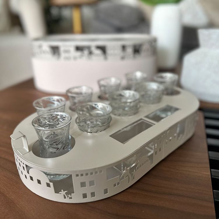 الميزة الجوهرية في هذا الصندوق هي قابليته العالية للتنقّل، ليكون الخيار المثالي للجلسات الخارجية، الطلعات البرية، الرحلات، الاستراحات، والمناسبات المفتوحة. ضيافة كاملة جاهزة للحمل دون التضحية بالأناقة أو التنظيم، تزيّن الجوانب بنقوش معدنية محفورة بدقة مستوحاة من مشاهد العمارة العربية التقليدية؛ أقواس، نوافذ، نخيل، ومآذن تتداخل بتناغم فني يعكس أصالة المكان ودفء التفاصيل. هذه الزخارف لا تُعد مجرد عنصر جمالي، بل تحوّل القطعة إلى مشهد بصري يحاكي المجالس العربية العتيقة ويستحضر أجواء الحارات والبيوت التراثية بروح معاصرة راقية.