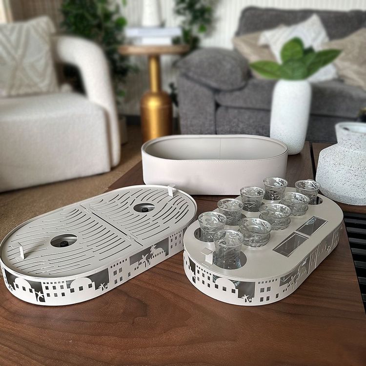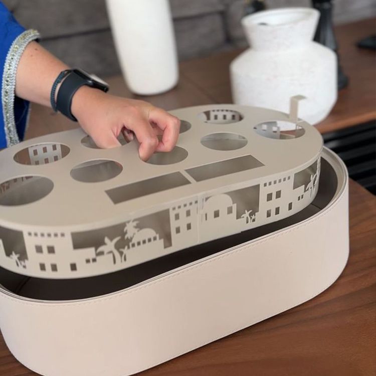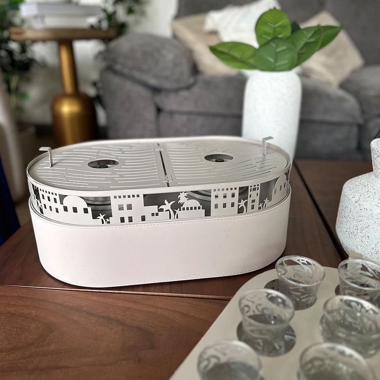 قطعة فاخرة صُممت لتعيد تعريف مفهوم الضيافة بأسلوب متنقّل يجمع بين الأصالة والحداثة. ليس مجرد صندوق ضيافة، بل تجربة متكاملة تُرافقك أينما كانت الجلسة، وتحمل معها روح الكرم والترحيب العربي الأصيل في كل تفصيل.
