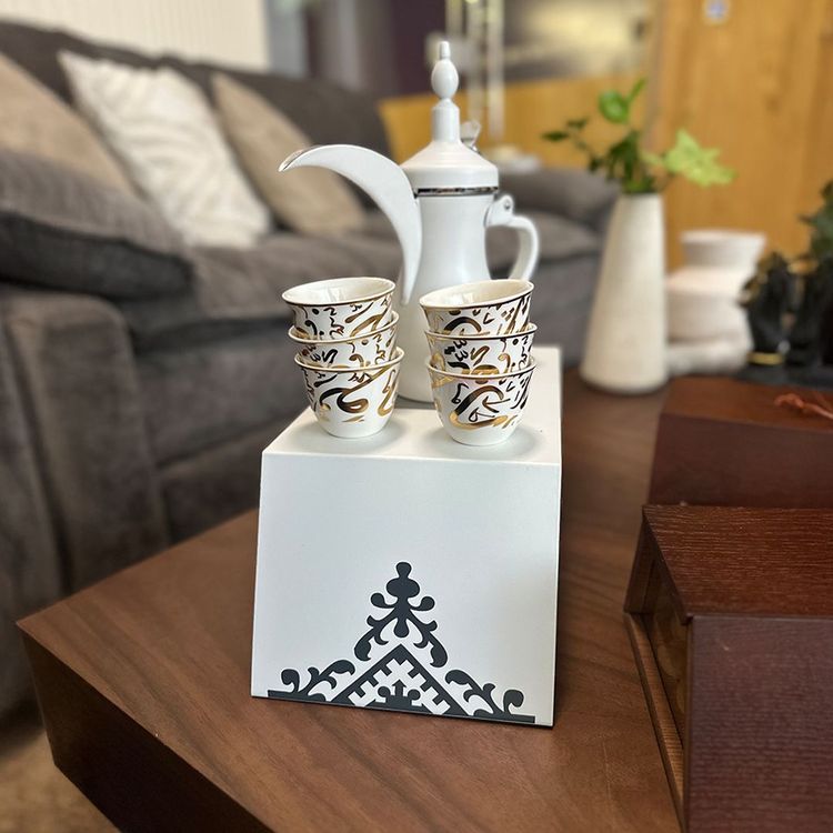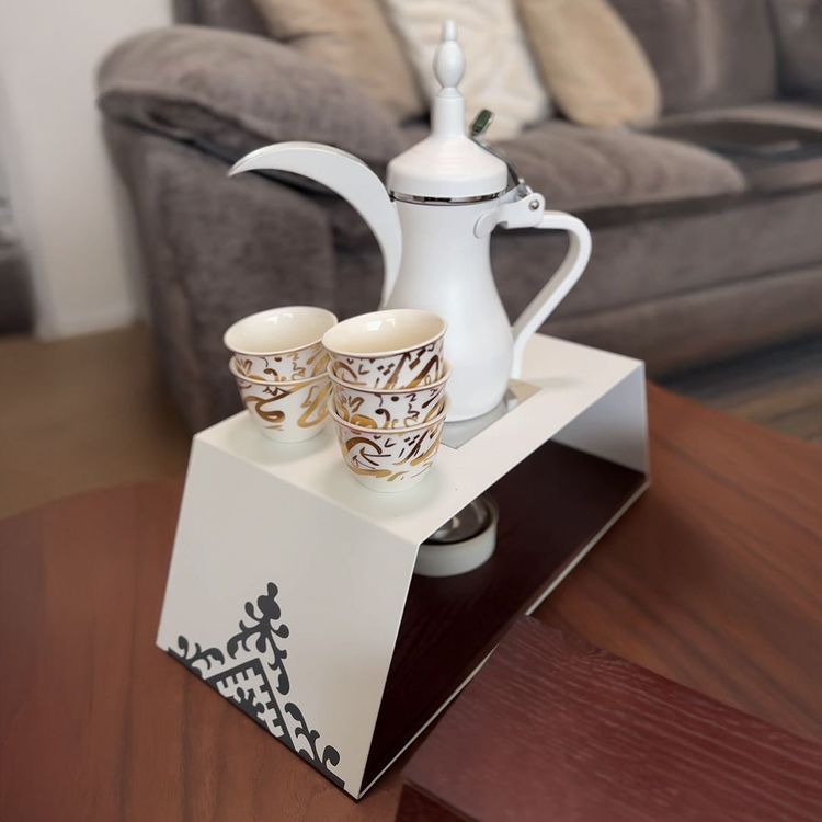 حتى عندما لا تُقدَّم القهوة، يبقى الطقم عنصرًا جماليًا يزيّن المكان ويعكس ذوقًا رفيعًا، كأنه قطعة ديكور فاخرة تحكي عن الاهتمام بالتفاصيل وحب الضيافة.