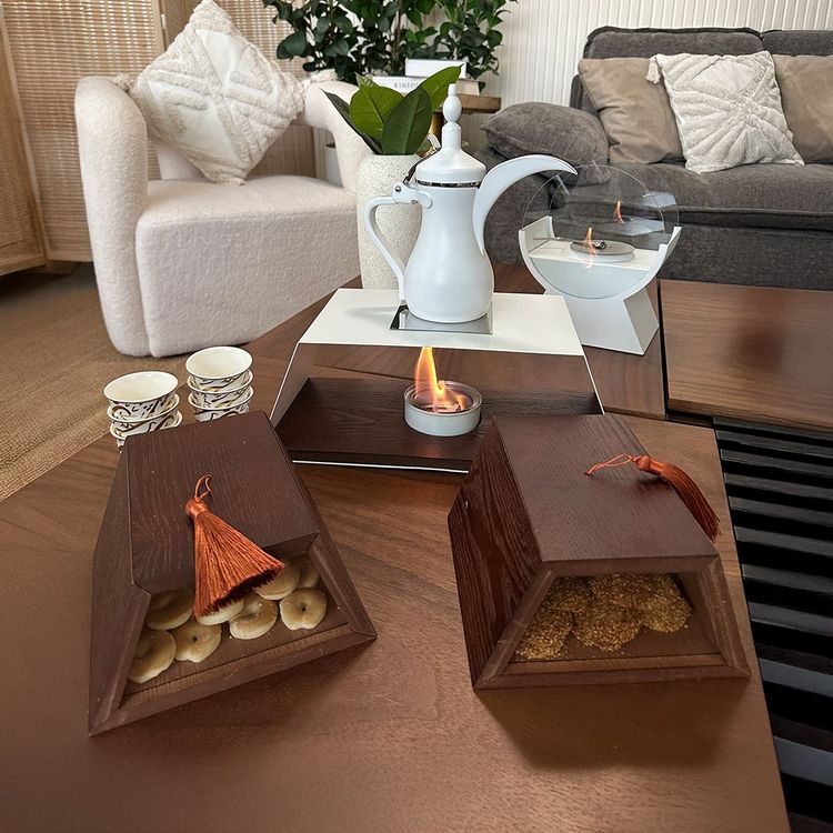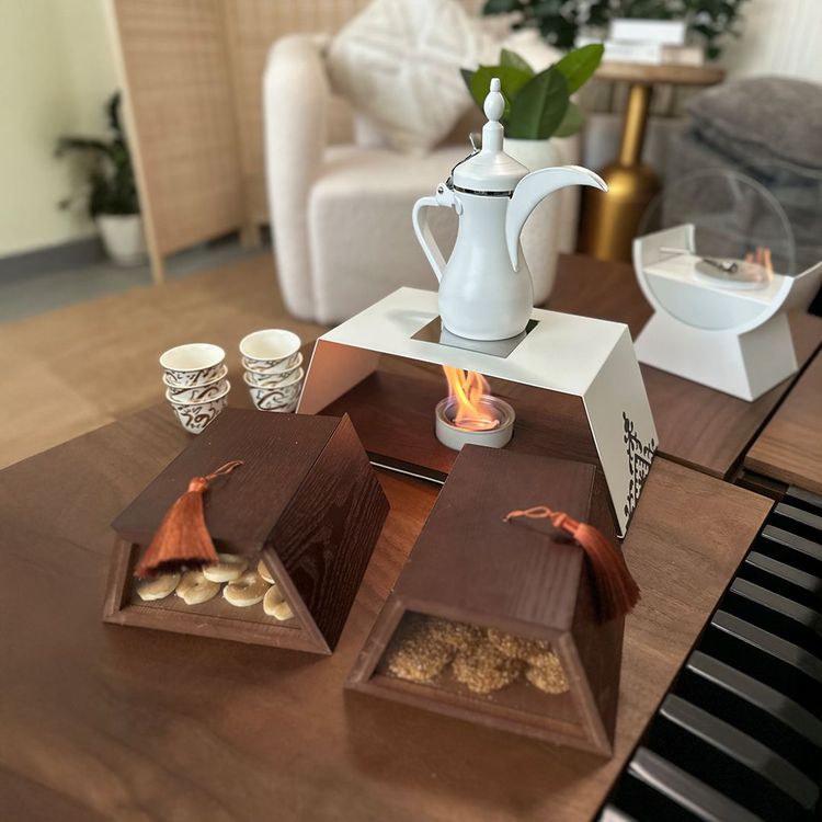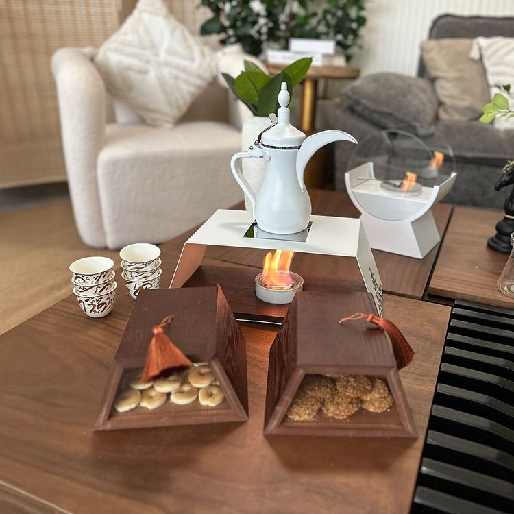 مساحة مخصّصة ومهيّأة بعناية لوضع وإشعال مصدر الحرارة بشكل آمن ومرتب، تمنحك سهولة كاملة في تحضير وتقديم القهوة بدرجة الحرارة المناسبة داخل المجلس أو في مختلف الجلسات، لتبقى القهوة جاهزة دائمًا بأناقة ودون أي تعقيد.