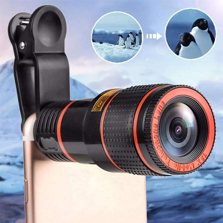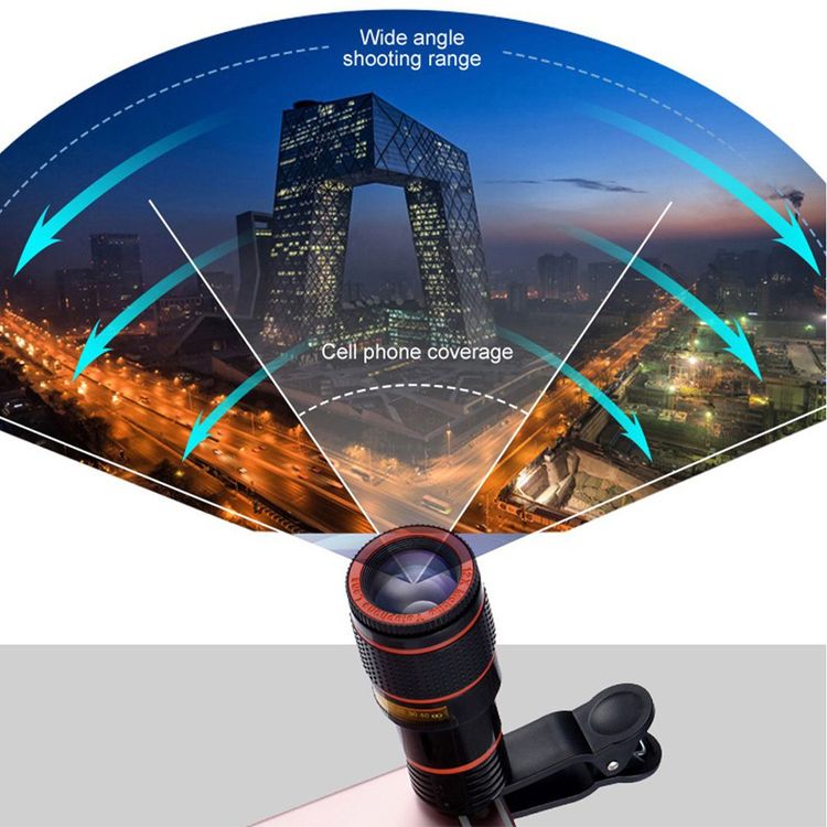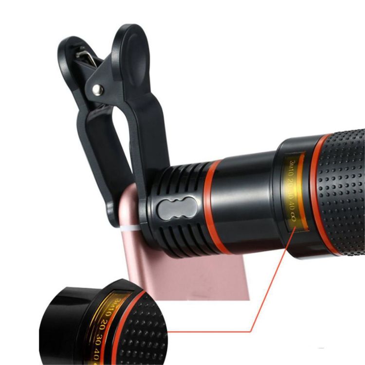 * قم بتثبيت الهاتف بالمشبك على العدسة * متوافق مع جميع الهواتف الذكية