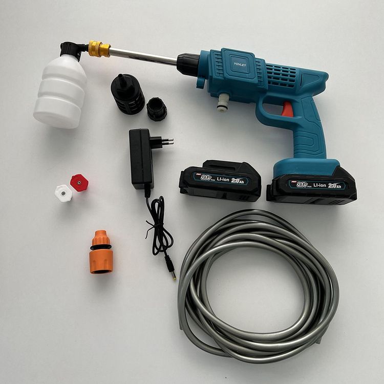 كل ما عليك هو تركيب البطارية بعد شحنها و تمديد الخرطوم بالماء