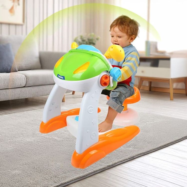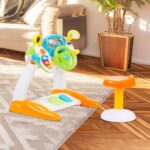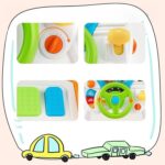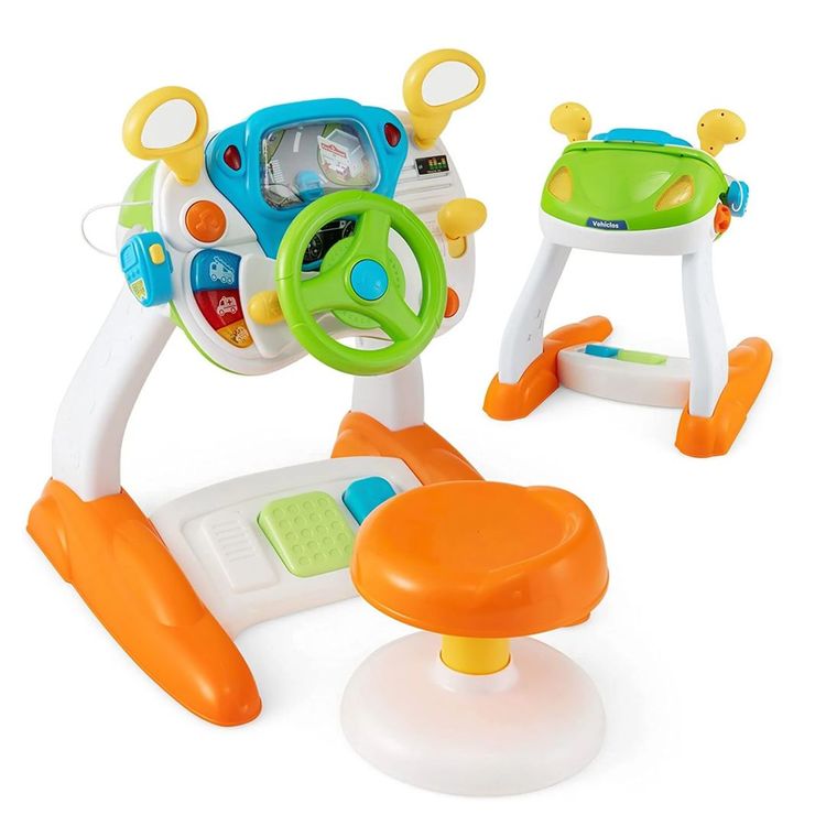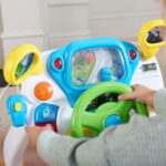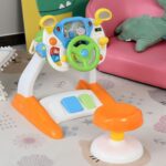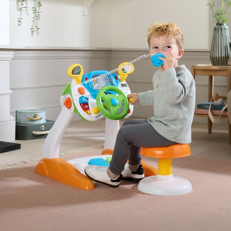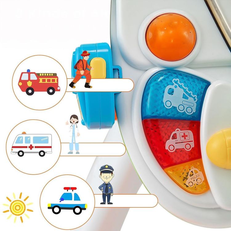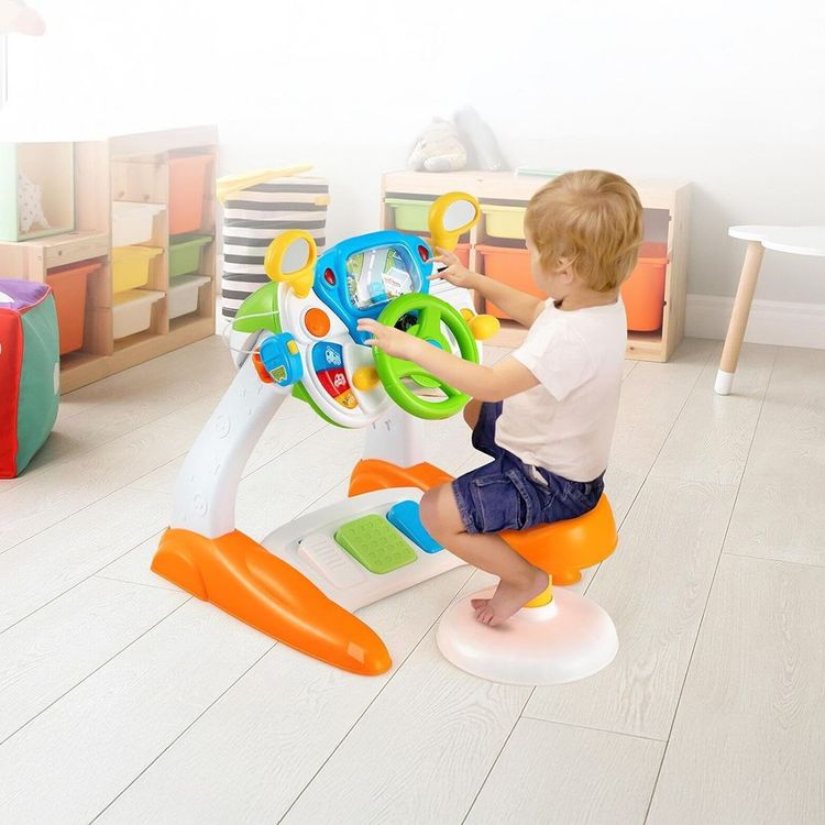 لعبة قيادة للأطفال بتصميم عصري ومرح يحاكي شكل لوحة قيادة حقيقية، مع مقود تفاعلي، أزرار ملونة، مؤثرات صوتية وضوئية تشجع الطفل على اللعب التخيلي والانغماس في عالم القيادة.