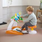 تركيب أجزاء اللعبة كما هو موضح في دليل التركيب. إدخال 6 بطاريات AA (غير مرفقة). جلوس الطفل على المقعد. تشغيل الأزرار والمقود للاستمتاع بالأصوات والأضواء.