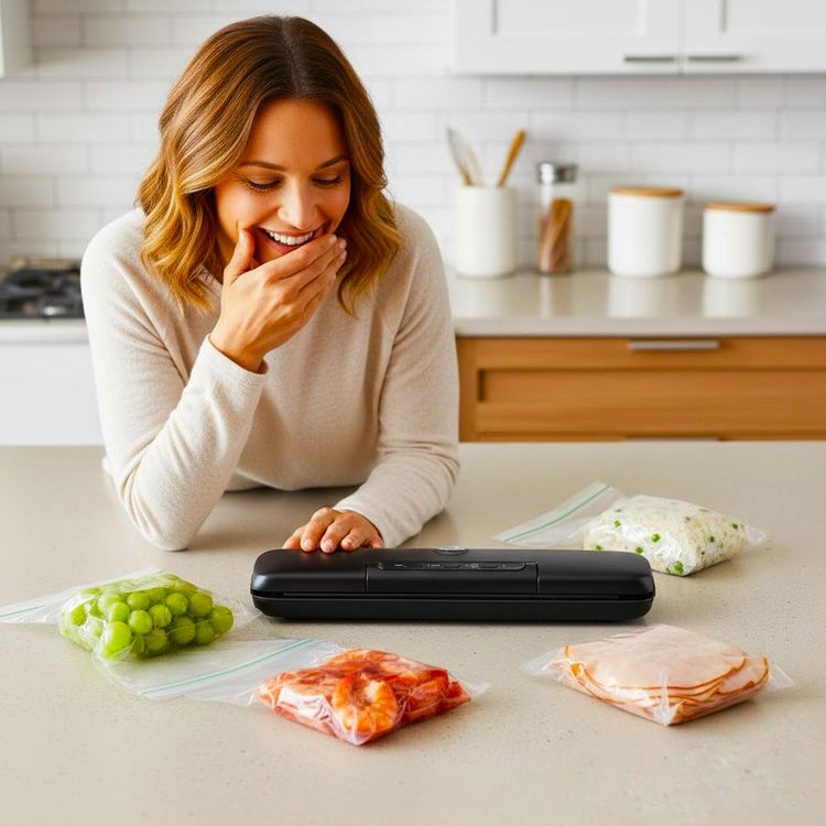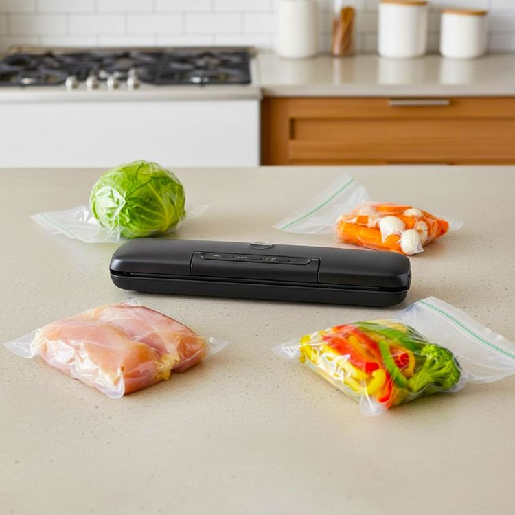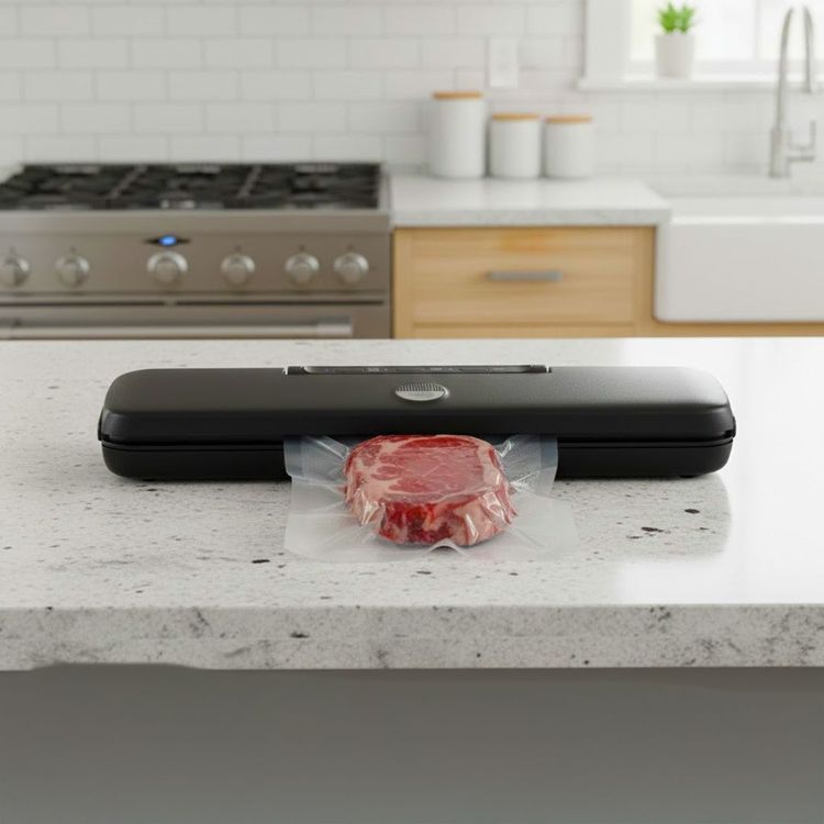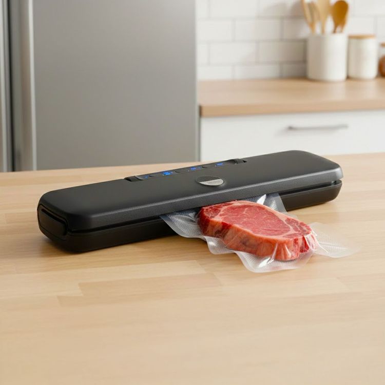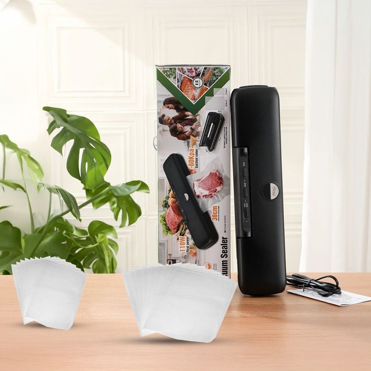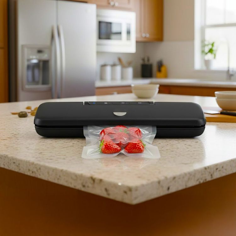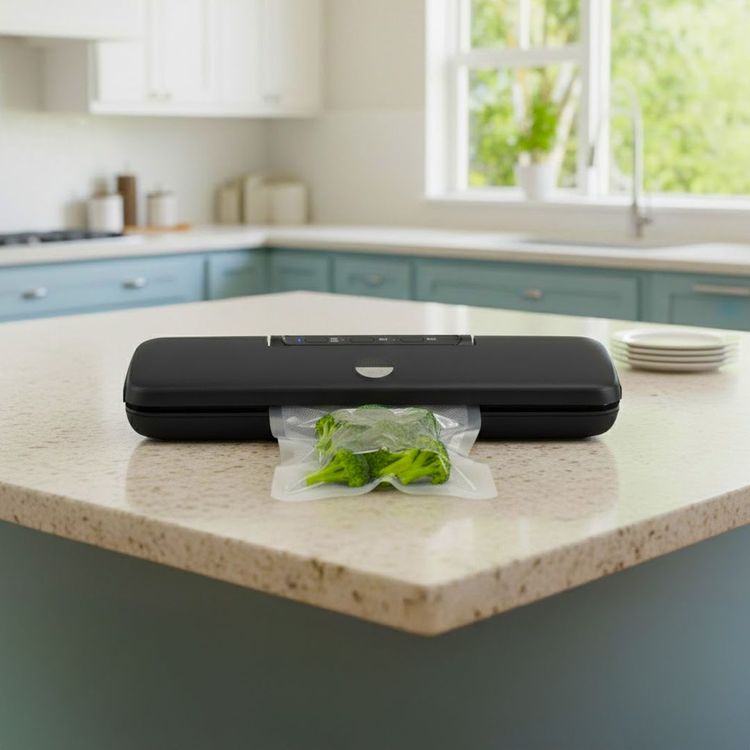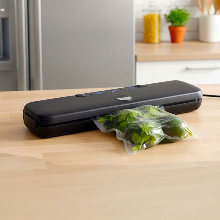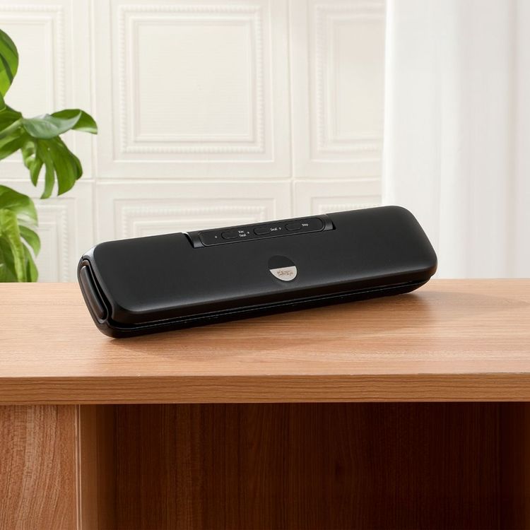 ماكينة تفريغ هواء منزلية بتصميم عصري نحيف باللون الأسود الأنيق، تناسب أي مطبخ حديث دون أن تشغل مساحة كبيرة. يتميّز شكلها الانسيابي بسهولة التخزين وسهولة الاستخدام اليومي، لتكون إضافة عملية وأنيقة لمساحة مطبخك.