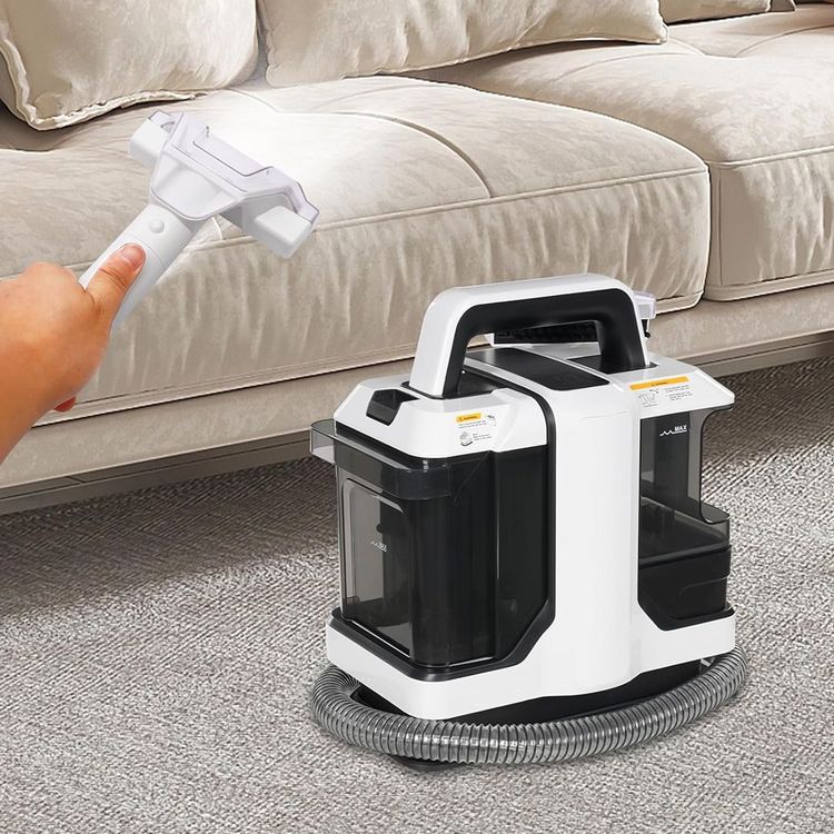 ماكينة تنظيف عميق بتصميم احترافي يجمع بين القوة وسهولة الاستخدام، بحجم مدمج ومقبض مريح يجعل حمل الجهاز ونقله سهلًا في جميع أرجاء المنزل. تأتي بجسم أبيض أنيق مع خزانين منفصلين للمياه النظيفة والمياه المتسخة لضمان تنظيف فعال دون إعادة انتشار الأوساخ.