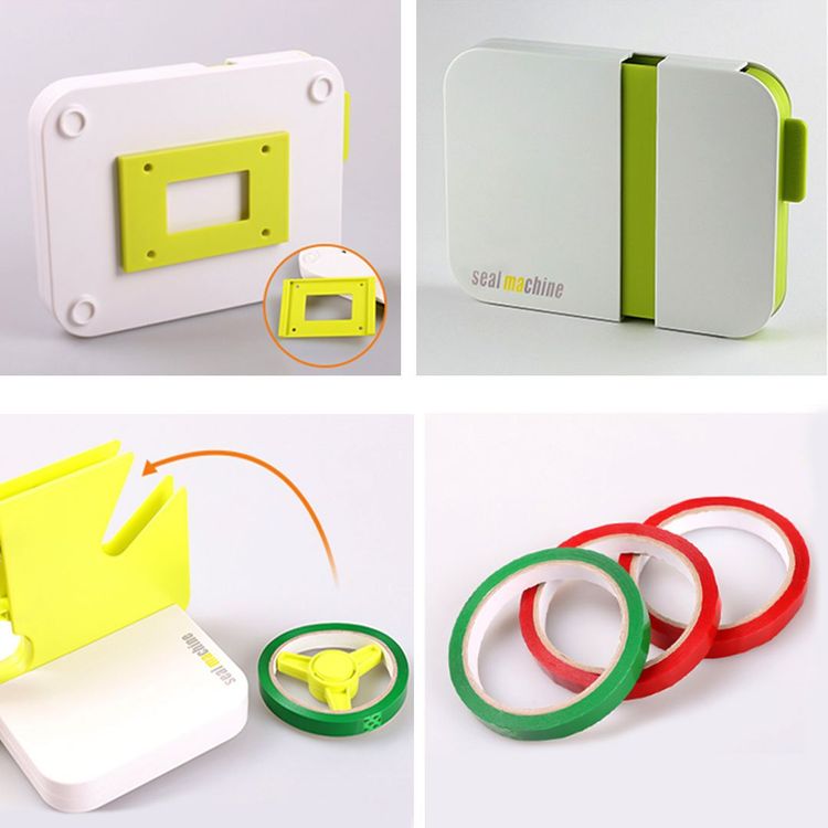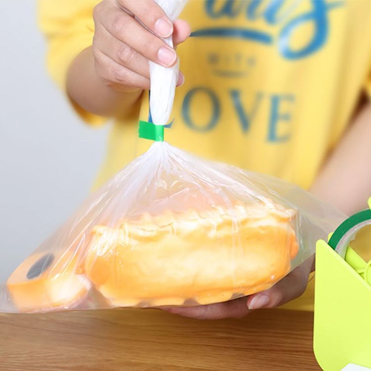 اللاصق مانع التسرب لأنه يغلق الشريط ويقطعه تلقائيًا عندما ينزلق الكيس على الجهاز