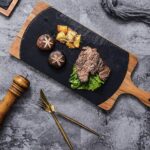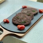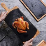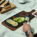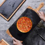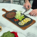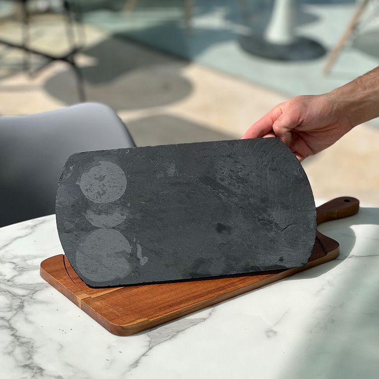 يعمل الحجر على الحفاظ على الطعام ساخن لأطول فترة ممكنة، كما يضيف لمسة فريدة بلونه الأسود لشكل اللوح الخشبي
