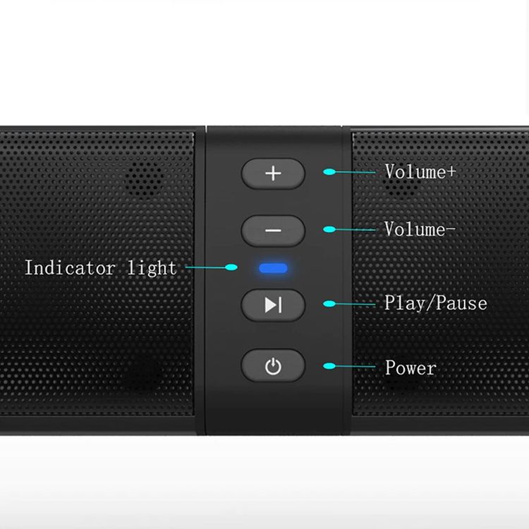 ازرار التحكم موجودة على مكبر الصوت : التحكم بالصوت، التحكم بالضوء، التشغيل والايقاف، تشغيل الموسيقى او ايقافها