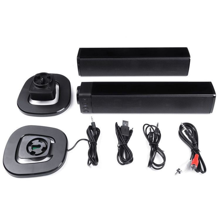 مكبرات الصوت عدد 2 قواعد للمكبرات عدد 2 دليل المستخدم كيبل الشحن سلك AUX سلك RCA