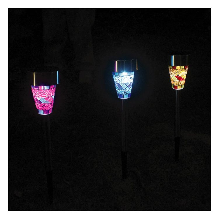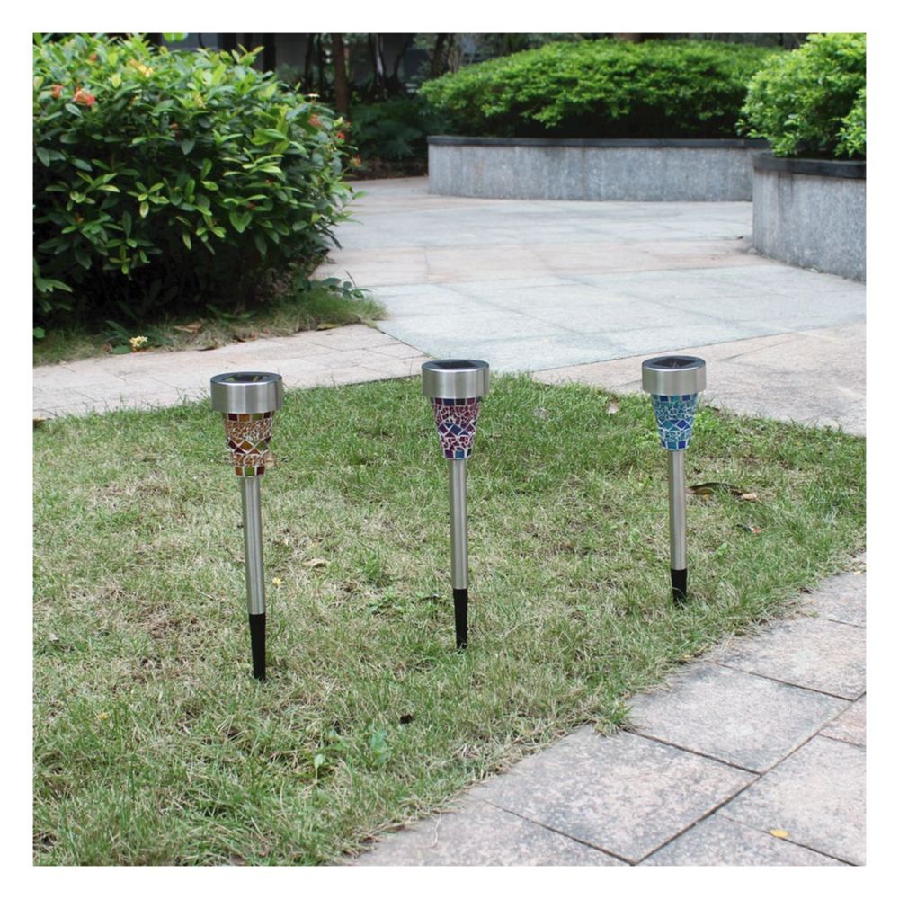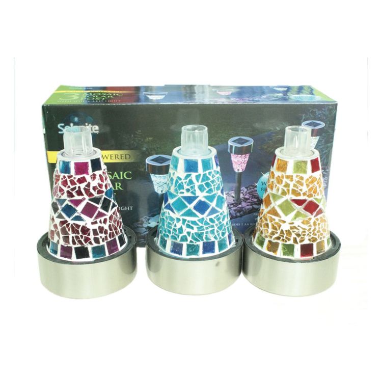 * 3 Color assortment Mosaic solar lights for more fun, Blue, purple and orange mosaic lampshades.yard decorations.Solar Path Lights Solar landscape lighting