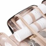 سحابات مزدوجة لسهولة الوصول إلى المستلزمات حتى لا تفتح الحقيبة بالكامل ؛ جوانب شفافة لتوفير نظرة عامة واضحة على المحتويات