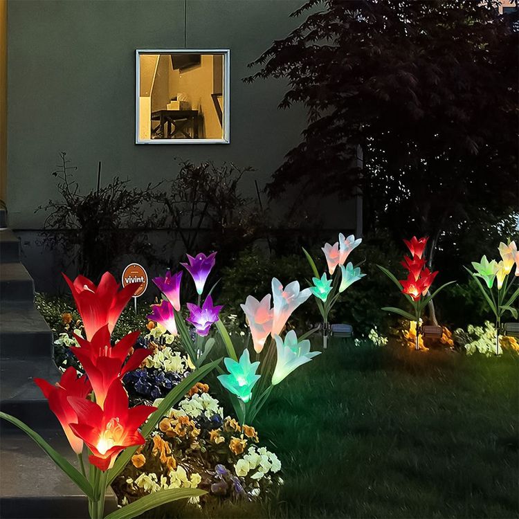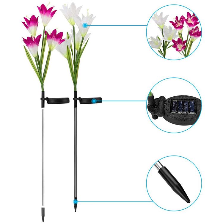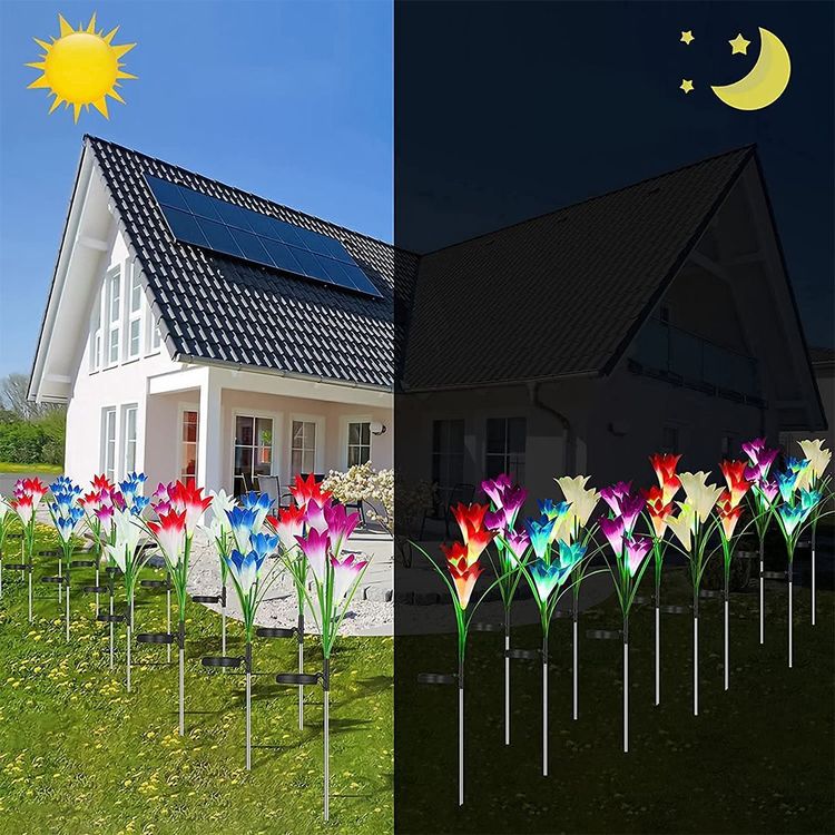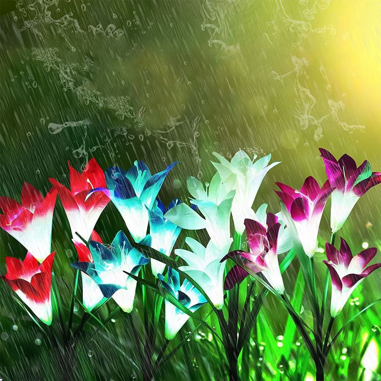 * This outdoor solar garden stake lights includes 4 packs of Flower lights, each pack has 4 lily flowers.
